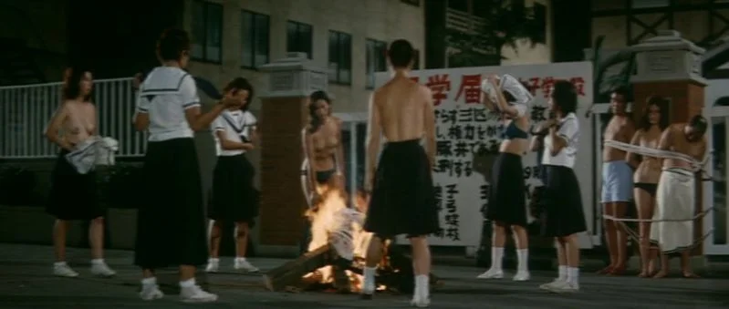 Delinquent girl boss meets and conflicts with an orphan girl who lives an isolated life after the dramatic deaths of her parents. She plays the piano, but stands up against her lecherous guardian, who is also a school official.Other alternative titles: Kyôfu joshikôkô: Onna bôryoku kyôshitsu